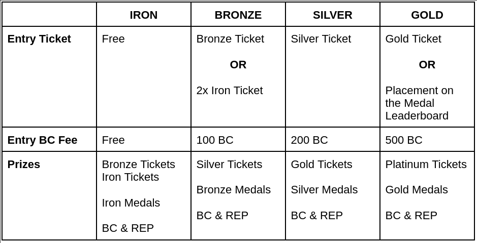 Most tournaments will have an entry fee, which may be a certain type of Ticket, some BC, or even a specific type of Agent. For standard tournaments, the below table shows the entry fees and the special prizes:
